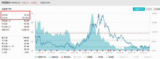 从配置性价比来看,尽管近期连续反弹,医疗ETF(512170)标的指数中证医疗最新PE估值33.44倍,仍低于近10年约70%左右时间区间。